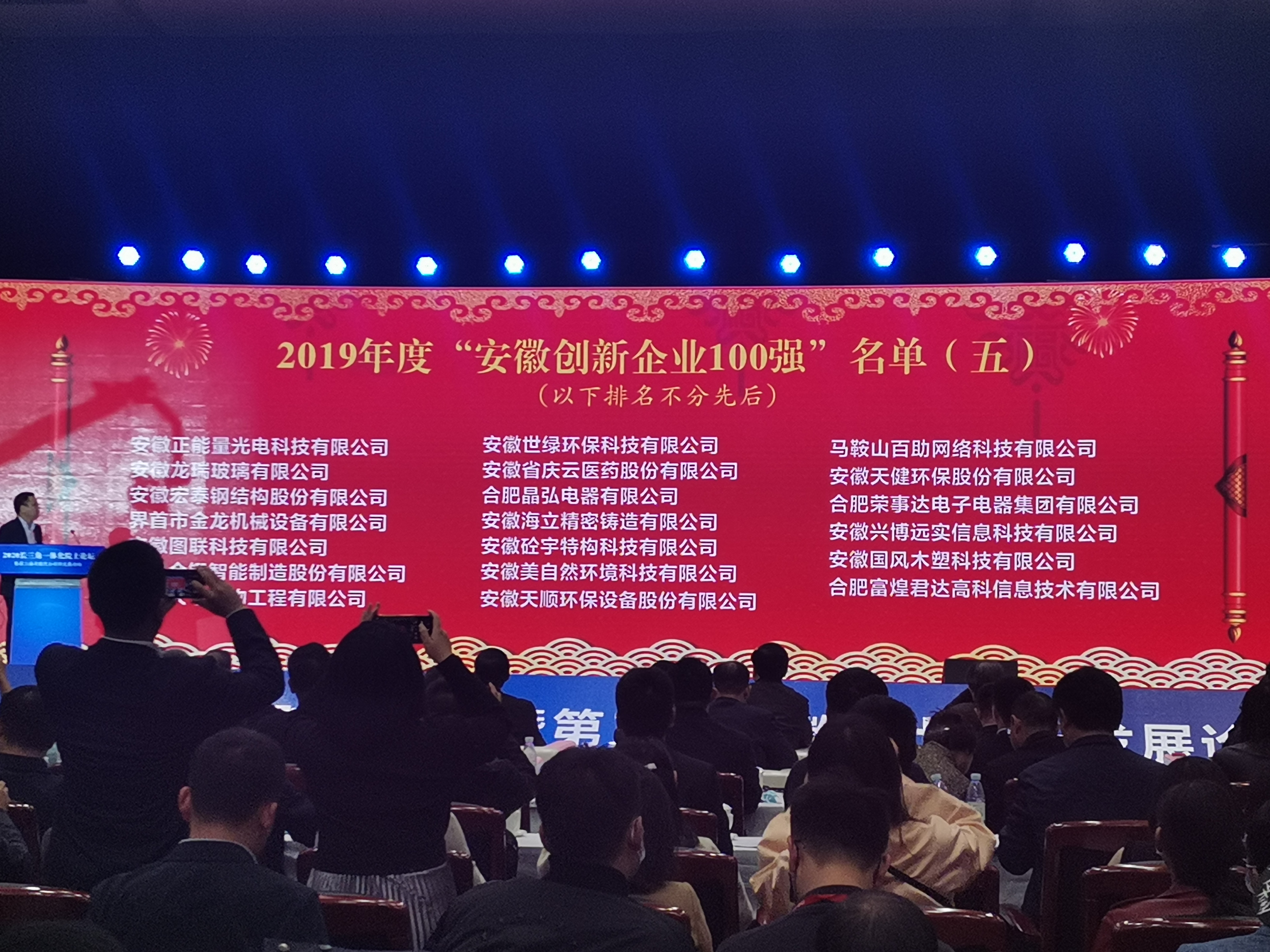 我公司榮獲“安徽創(chuàng)新企業(yè)100強(qiáng)”榮譽(yù)稱(chēng)號(hào)