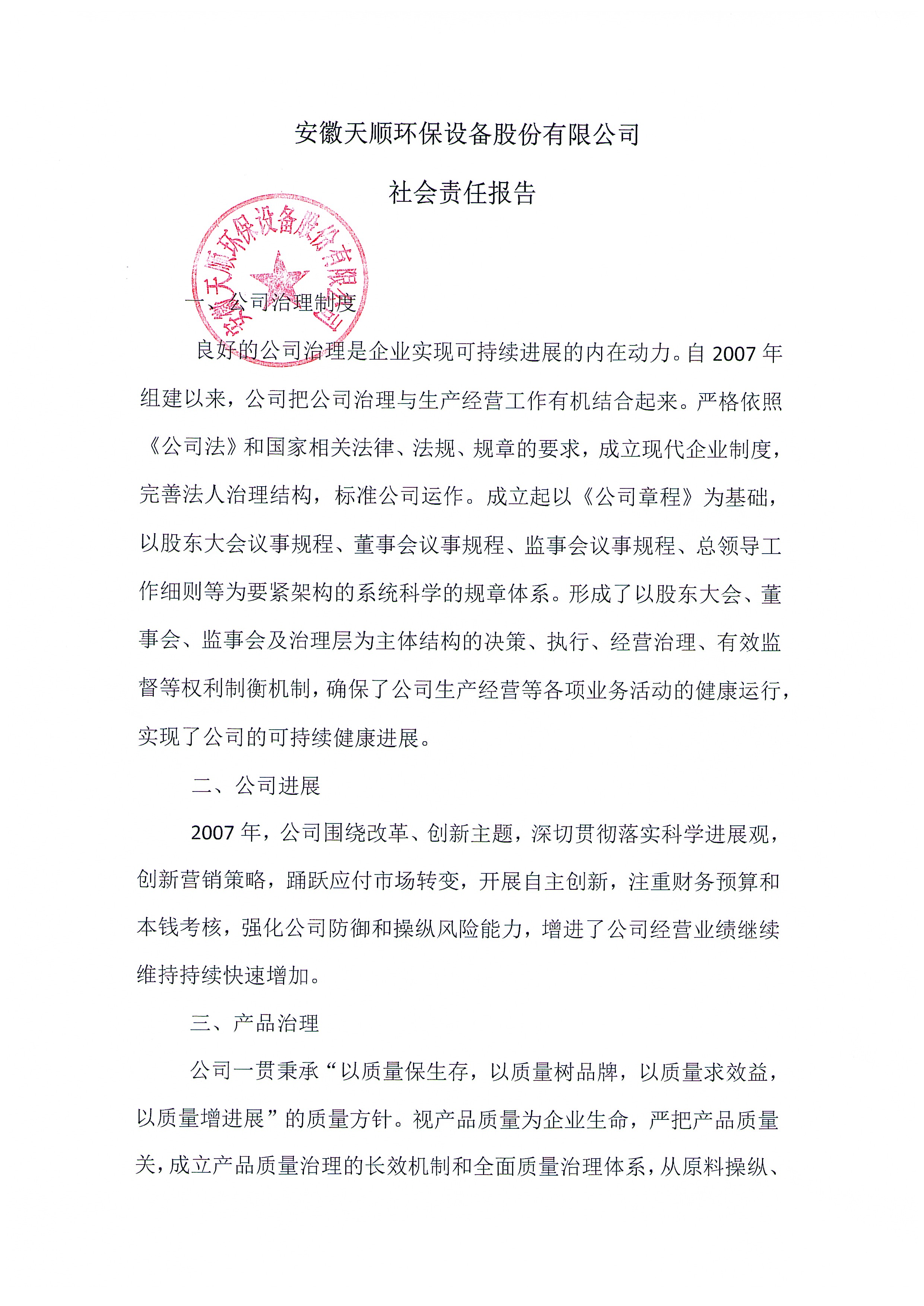 安徽天順環(huán)保設(shè)備股份有限公司社會責(zé)任報告